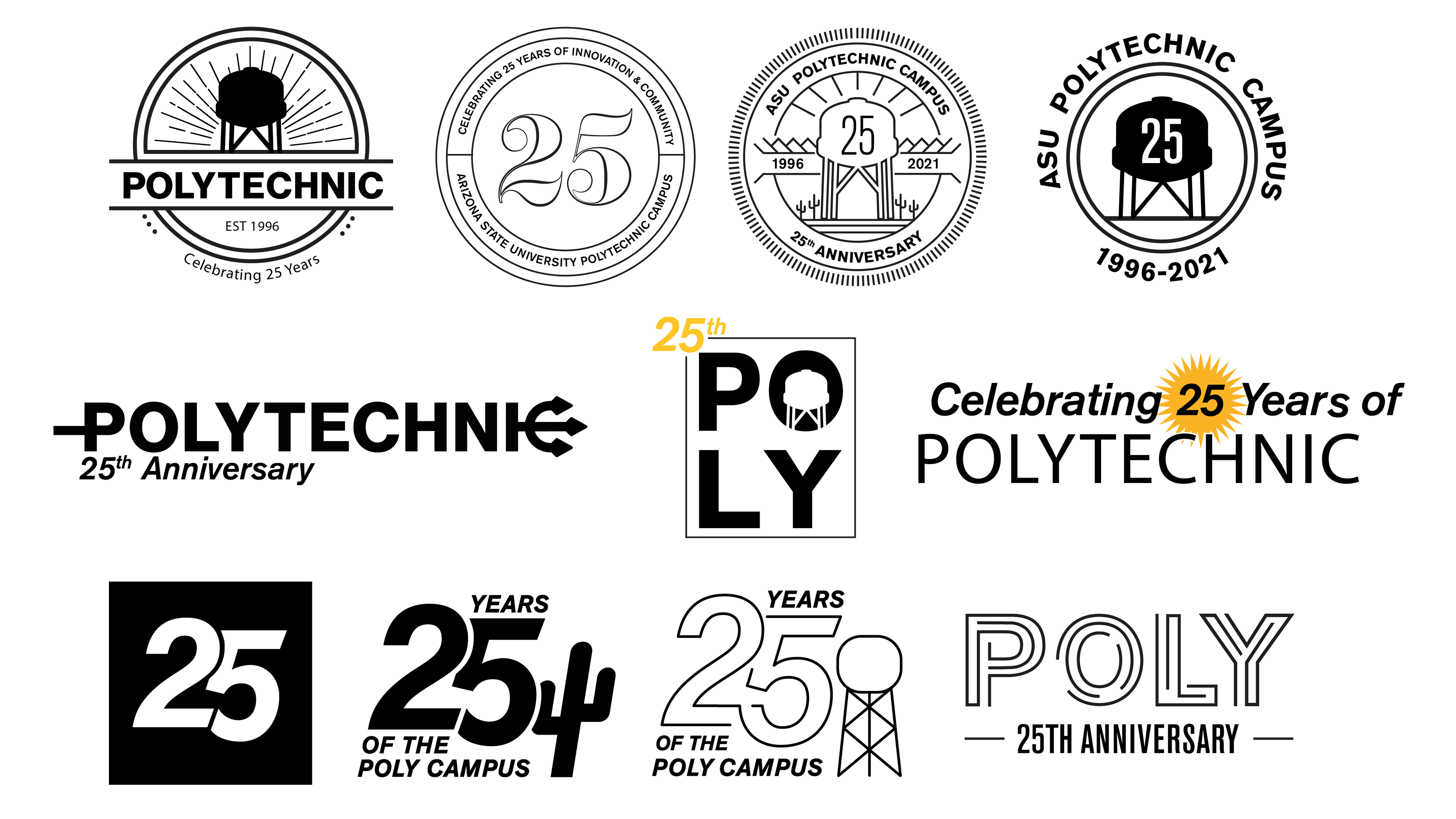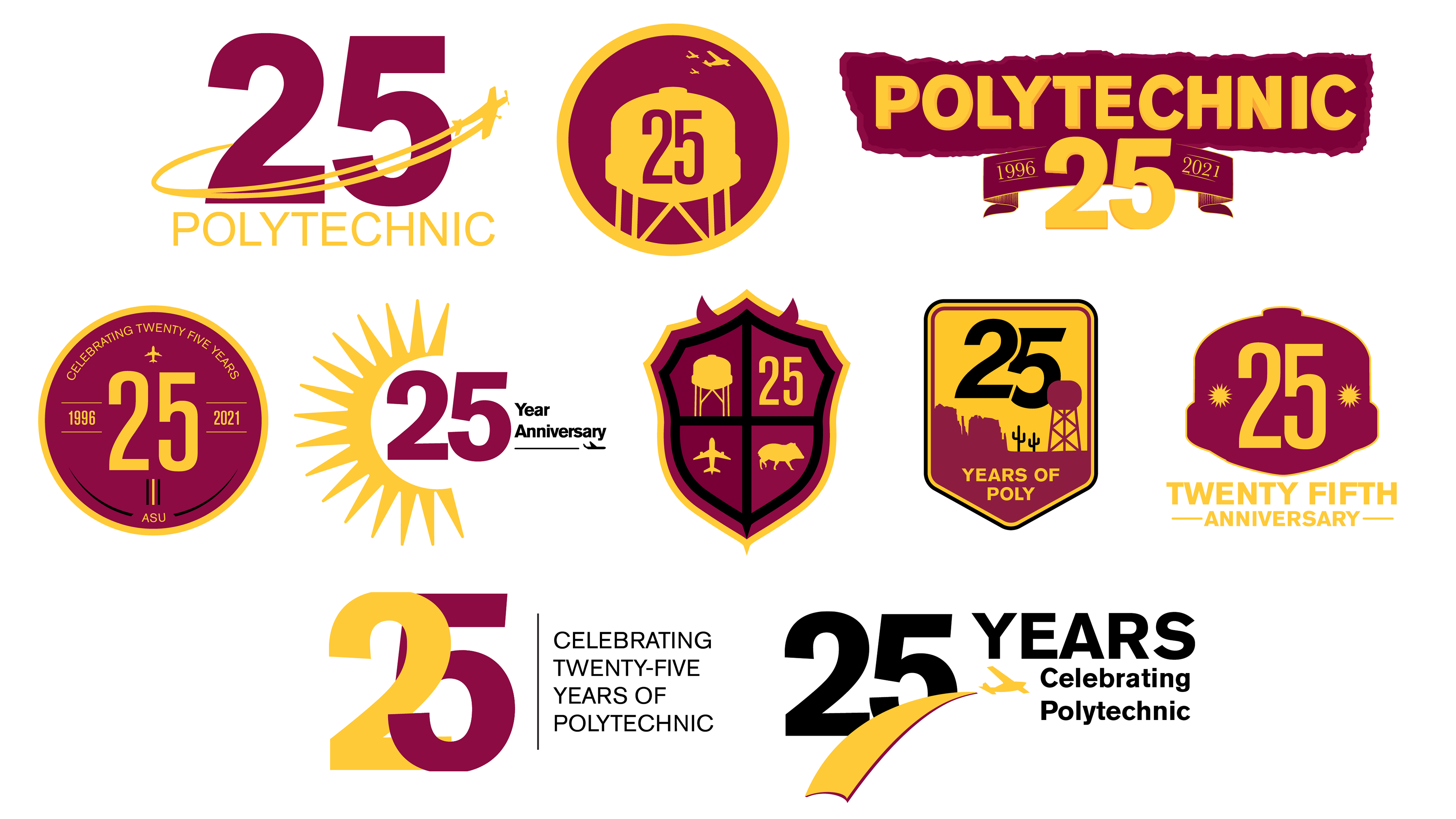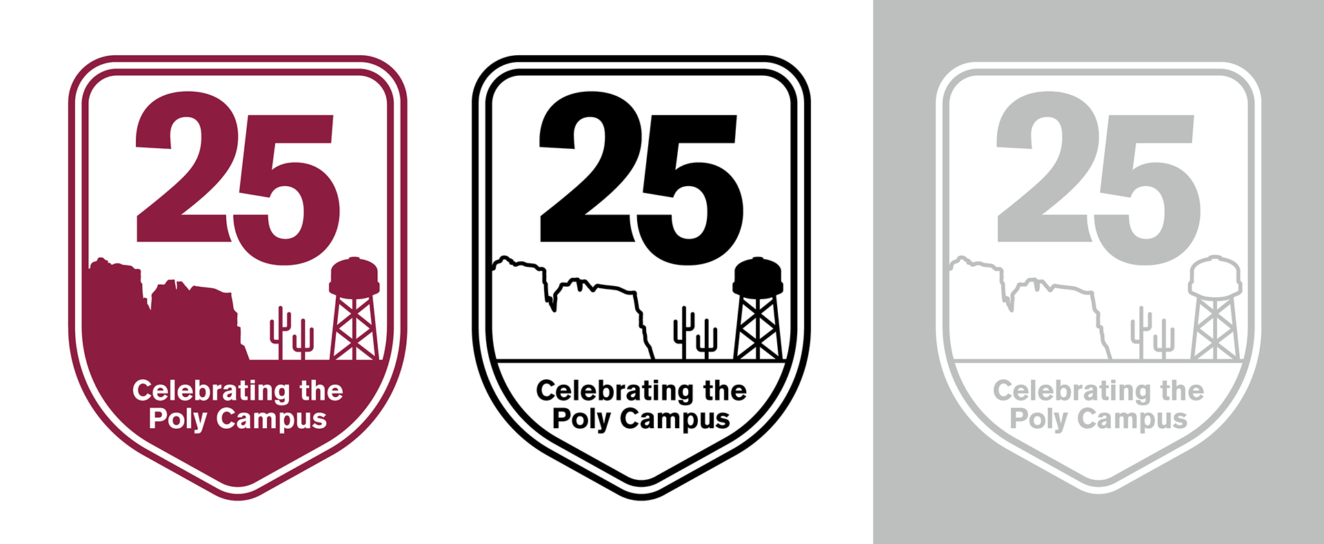 The GIT Creative Agency were tasked to design an emblem or symbol to represent the 25th anniversary events. This logo would be used at the main luncheon and other celebratory events. In addition to representing Poly and its 25-year story, the emblem needed to comply with the established brand guidelines set by Arizona State University's marketing team.