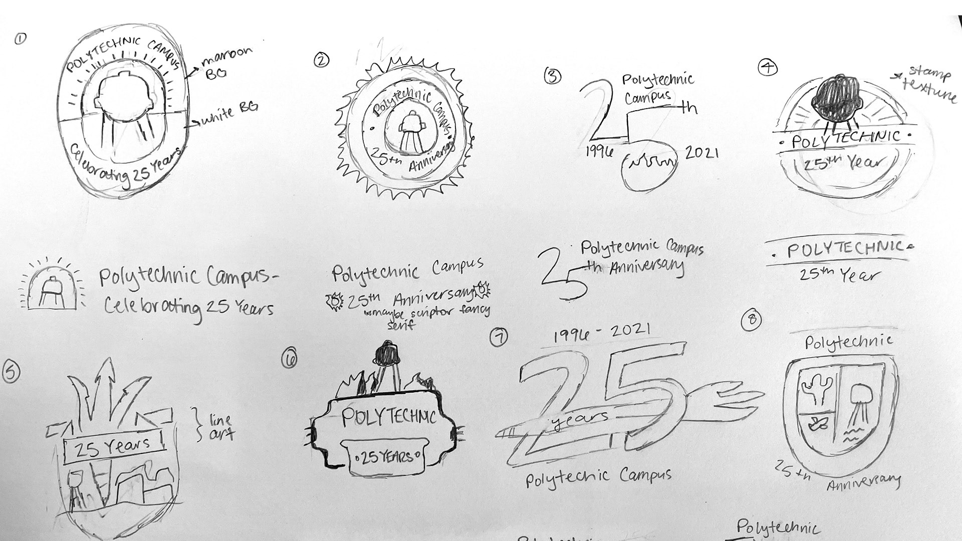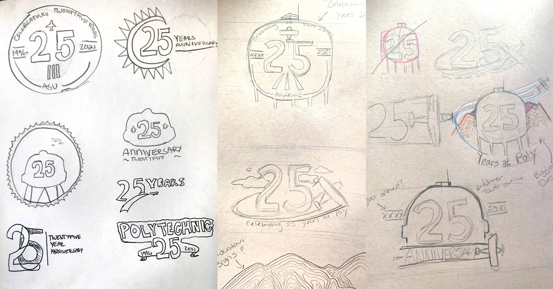 Early sketches and concept designs for the Poly25 emblem