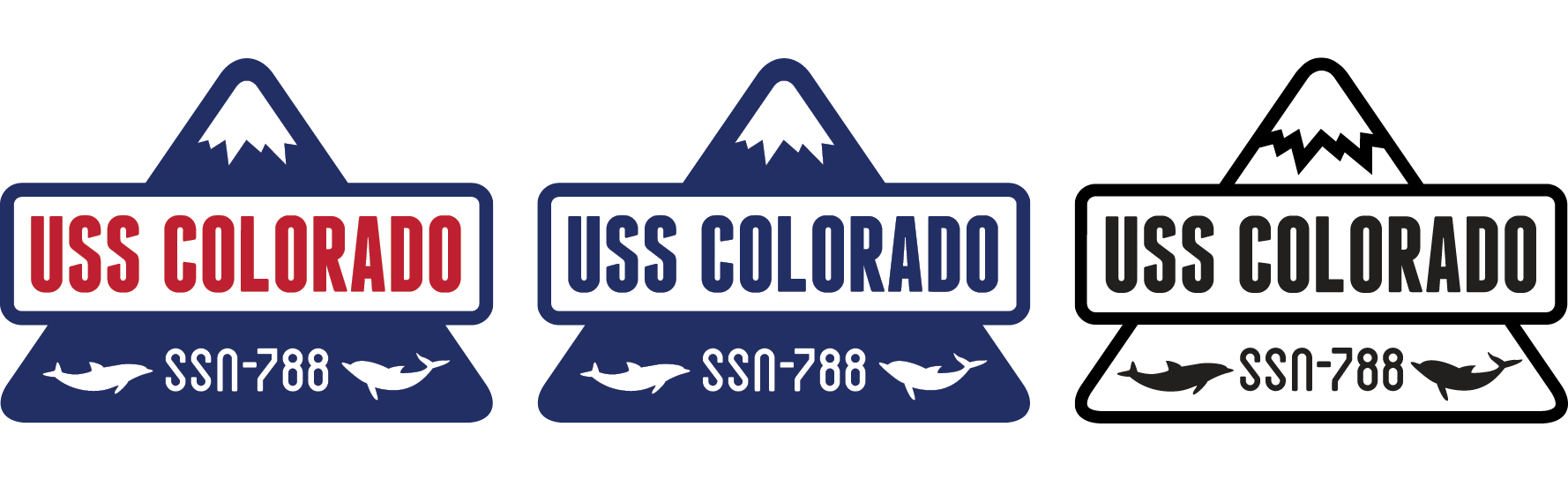 Simplified Logo for the USS Colorado in full-colour, one-colour, and black-only variations